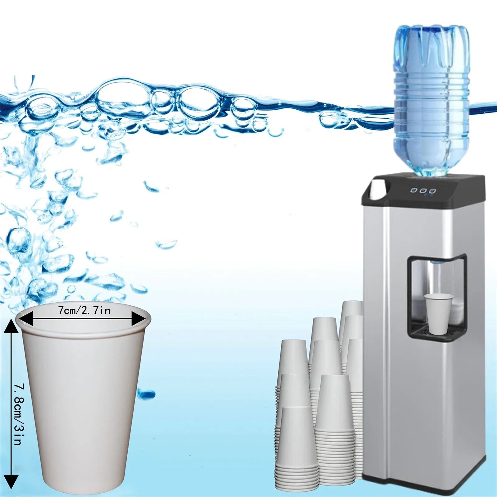 The product contains: 1 box of paper cups